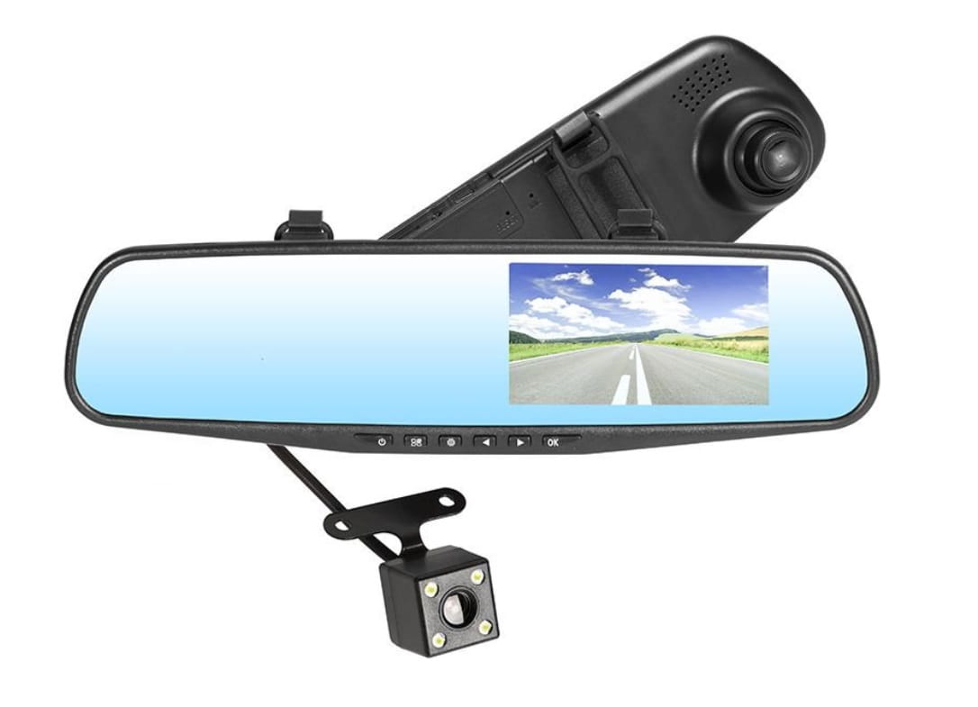 Kamera samochodowa TRACER MobiMirror FHD to wideorejestrator obsugujący dwie kamery. Przednia obsługuje maksymalnie rozdzielczość 1920*1280 pzy 25 klatkach na sekundę, zaś podgląd na tylną szybę na tylnej kamery jest możliwy w rozdzielczości 640*480 w 25 klatkach na sekundę. Przednia kamera nagrywa obraz o szerokości 170 stopni, natomiast tylna - 120 stopni. Urządzenie ma wbudowaną baterię, która podtrzymuje ustawienia w każdej nieprzyjemnej sytuacji drogowej. Dla ułatwienia i wygody użytkownika, zastosowano wyświetlacz TFT LCD 4.3".