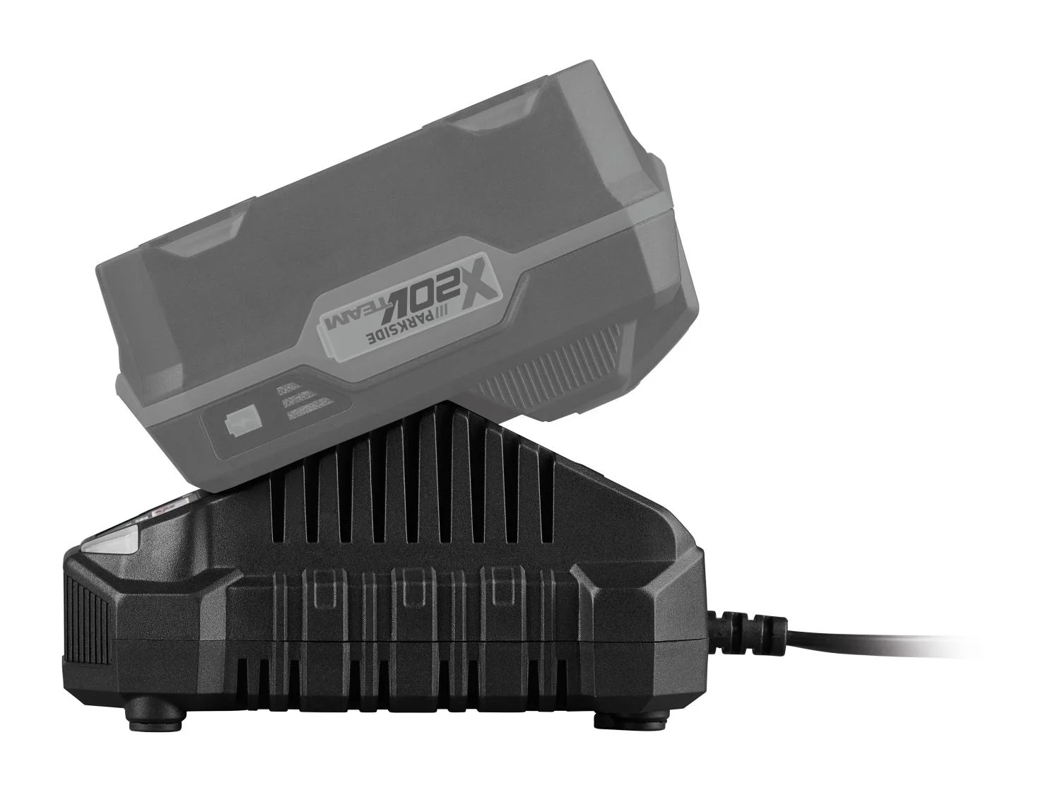 Opis PARKSIDE® Ładowarka do akumulatorów 20 V, PLG 20 C1, 2,4 A Opis produktu z automatycznym wyłączaniem ładowania i wskaźnikiem LED z gumowymi nóżkami dla zapewnienia stabilności w zestawie uchwyt do montażu na ścianie (materiały montażowe nie są dołączone) kompatybilna ze wszystkimi akumulatorami z serii „X 20 V TEAM“ akumulator nie wchodzi w zakres dostawy Pasujący akumulator możesz zamówić tutaj. Cechy techniczna Pobór mocy 65 W Prąd ładowania 2,4 A Czas ładowania (2 Ah / 4 Ah / 8 Ah / 12 Ah): 60 min / 120 min / 240 min / 380 min Długość przewodu zasilającego 2 m Materiał tworzywo sztuczne Wymiary 138 x 91 x 69 mm Waga 326 g