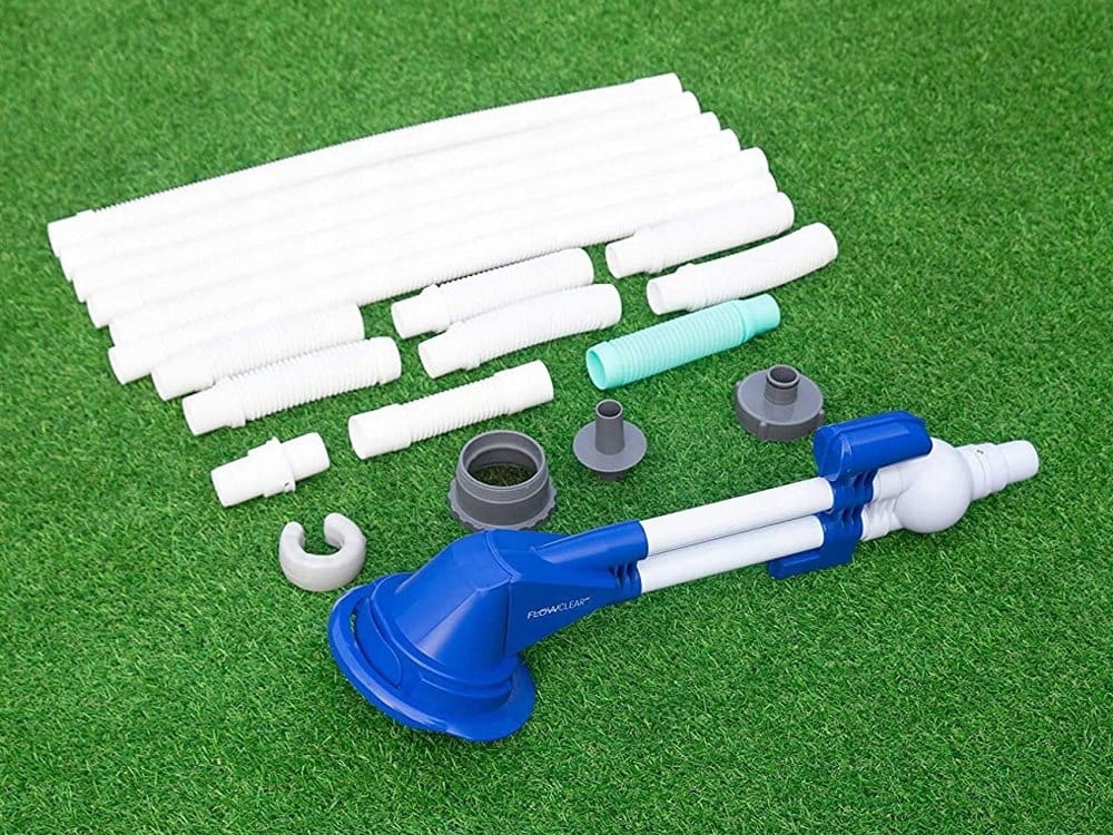Wraz z pompą w zestawie znajduje się wąż o długości aż 6 metrów oraz złączki, które są kompatybilne z większością urządzeń dostępnych na rynku. Dzięki temu, że czyściciel posiada regulator ciśnienia, możesz używać go z pompami filtrującymi. Nie musisz przejmować się, że zanieczyszczenia dostaną się do niej, powodując uszkodzenie – czyściciel posiada wbudowany filtr, który zatrzyma wszelkie zabrudzenia: liście, piasek itp.