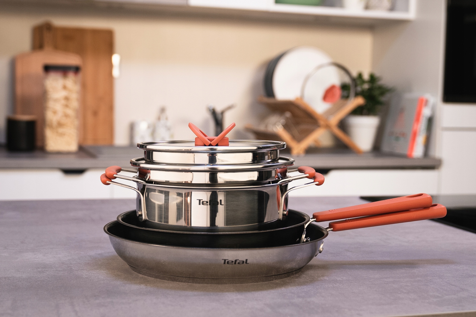 Zapomnij o problemach z przechowywaniem! Dzięki płaskim pokrywkom i pasującym do siebie uchwytom naczynia Opti'Space zmieszczą się w każdej szafce.